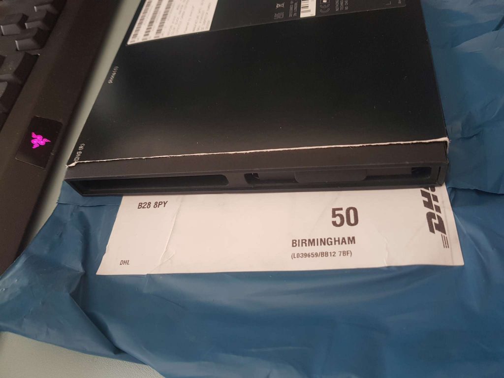It arrived promptly at 13:49 on Friday 5th August, the very next day! It took me a while to open the door as I was in a meeting and I simply took the package and put it on my desk to open later. You can see the package in the DHL delivery drivers hand in the screenshot below: