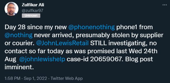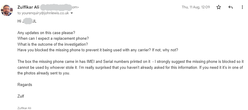 Hey Zulfikar. I am sorry to hear about your phone going missing and the stress John Lewis has put you through. I am literally going through the exact same problem (with an iphone 14 pro) and am experience the same customer service you experienced. I was wondering if you managed to get a resolution?